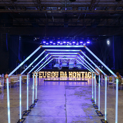 Transforme o espaço do seu evento em uma experiência imersiva. Nosso serviço de Decoração e Cenografia une elegância e tecnologia, oferecendo desde mesas postas sofisticadas até grandes estruturas de iluminação e túneis de LED. Criamos a atmosfera perfeita para impressionar seus convidados e valorizar sua marca.